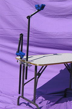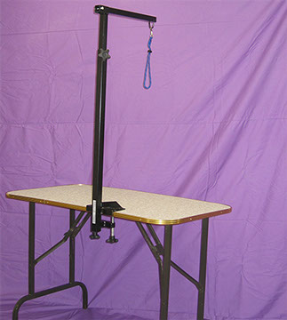This is a steel, collapsible arm that attaches securely to your grooming table with it’s own clamp.