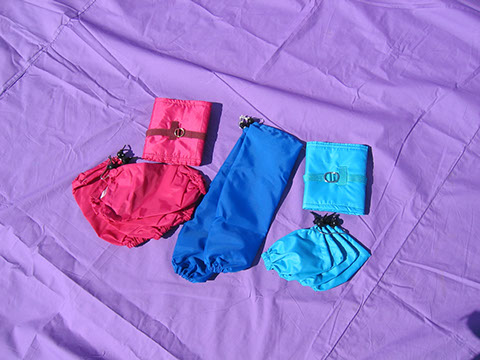 They have elastic drawn bottoms that fit just above the foot and an elastic draw string top, making them easier to put on, but will stay put.